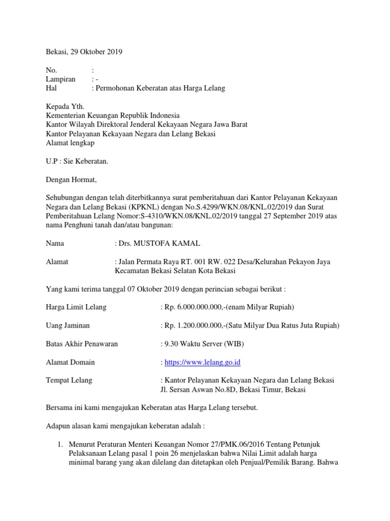 Contoh Surat Keberatan Harga Lelang Pdf